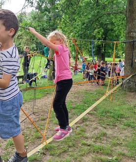 Am 04.06.24 und am 05.06.24 wanderten die Hortgruppen auf die Burg, um einen Kletterparcours zu absolvieren. Die Kinder waren ziemlich aufgeregt und haben sich sehr darauf gefreut. Der Kletterparcours war nicht so einfach, umso toller war es, dass ihn alle Kinder geschafft haben und alle gesund und munter wieder festen Boden unter den Füßen hatten. Zum Schluss konnten sich noch alle Kinder auf der Burg austoben.