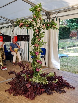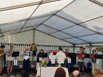Am 18. Juni fand 10 Uhr, in Verbindung mit unserem Dorf- und Kinderfest, der beliebte Zeltgottesdienst auf dem Gelände des Ortschaftsbürgerhauses statt! Das wunderschöne, blumengeschmückte Kreuz war wieder eine Augenweide und erfreute die vielen Besucher. Vikar Sittner hatte mit uns ein kleines Anspiel vorbereitet, welches regen Zuspruch fand. Der klangvolle Posaunenchor aus Pegau untermalte den gesamten Gottesdienst - unter anderem mit dem Lied "Geh aus mein Herz und suche Freud", welches der Audigaster Kirchenchor mit weiteren Versen komplettierte! Es war ein sehr gelungener Zeltgottesdienst und wir danken den vielen Mitwirkenden und Unterstützern auf das Herzlichste! Im Anschluss gab es für alle ein schmackhaftes Mittagsessenangebot.
