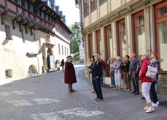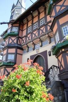 Ernst Koch hatte noch zu seiner Lebzeit verfügt, dass diesen Dreiseithof einmal die Stadt Wenigerode erhält und darin ein Museum mit ländlicher Tradition und Kultur einrichtet. Dieses Museum wurde 1995 eröffnet und der damals gegründete Förderverein erstellte die sehr sehenswerte Ausstellung, betreibt das Museum mit allen Belangen (Führungen, museumspädagogische Arbeit, Feste, …) und zwei Mitglieder des Vereins gaben uns einen Einblick in die ländliche Lebensweise um 1900. Man hätte ihnen noch stundenlang zuhöhren können, aber auf uns „wartete“ eine Stadtführung in Wernigerode. Meister Hilleborch, aus Wernigerode, nahm sich Zeit für uns, den Umbau eines Spielhauses zum Rathaus (1494 bis 1498 – erster Rathausbau, 1528 abgebrannt) zu beschreiben. Für den Neubau (1539 bis 1544 – wieder ein Umbau eines Spielhauses), war er für die Vollendung verantwortlich.