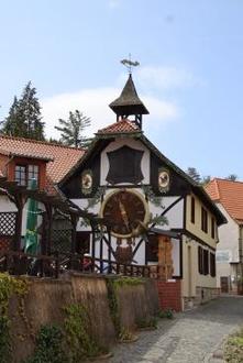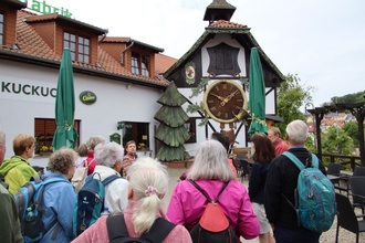 Alle Programmteile des nächsten Tages „spielten“ sich in Gernrode ab. Eine „Stadtrundfahrt“ war schon notwendig, bis wir unser erstes Ziel, die Kuckucksuhrenfabrik gefunden hatten. Kuckucksuhren aus dem Harz und auch Wetterhäuschen waren schon zu DDR Zeiten weltbekannt und wir durften diese Manufaktur besichtigen.