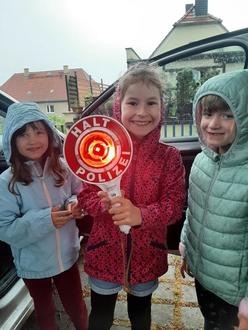 Am Donnerstag dem 07. Juni 2023 besuchte uns die Polizei aus Groitzsch. Die zwei netten Polizisten erklärten und zeigten uns verschiedene Verkehrszeichen, welche wir für den zukünftigen Schulweg kennen sollten. Danach probten wir das Gehen über die Straße. Auch das Einsatzfahrzeug dürfen wir uns von innen anschauen. Zum Schluss wurde unser “Neues Wissen“ anhand eines Quiz überprüft. Zum Glück hatten unsere Vorschüler gut aufgepasst und lösten die Aufgaben mit Bravour. Dafür erhielten sie einen Fußgängerpass. Ein toller Tag! Wir freuen uns auf das nächste Mal.