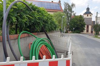 Unter Vollsperrung der Staatsstraße wurden in Auligk die Glasfaserleitungen verlegt.