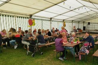 Der Sonntag begann traditionell mit einem Zeltgottesdienst, der zur Freude der Anwesenden vom Posaunenchor Pegau begleitet wurde.