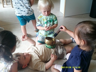 Die Kita ist für die meisten Kinder auch ein „Arbeitstag“, der u.a. sowohl mit Spiel, Spaß, Lernen und Toben, als auch mit Hektik und Stress verbunden ist. Daher ist es insbesondere für Kinder wichtig, auch Ruhe- und Entspannungsphasen über den gesamten Tagesablauf einzubauen. Aus diesem Grund nahmen wir diesen besonderen Tag zum Anlass, Ruhe und Entspannung durch Massagen und Klangreisen einkehren zu lassen. Dabei hatten alle großen und kleinen Kinder viel Freude. J