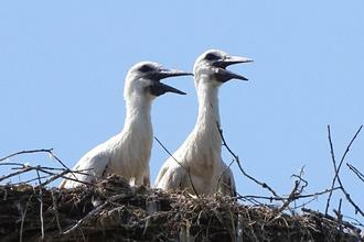 Die beiden Jungstörche in Nöthnitz sind die Nachzügler in unserer Region. Fotos: Olaf Becher