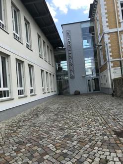 In den Sommerferien wurde an der Grundschule durch das Baugeschäft Große der Sockel erneuert. Im Laufe der Zeit war der alte Sockelputz bröcklig geworden.