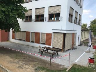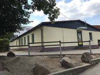 Ebenfalls wurde in den Sommerferien ein neuer Außenputz durch die Fa. Wolf aus Göpfersdorf auf den Flachbau des Hortkomplexes aufgebracht und das Giebeldreieck mit Schiefer bekleidet. Somit ist das Erscheinungsbild der Hortgebäude wieder in einem würdigen Zustand.