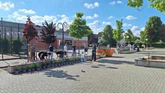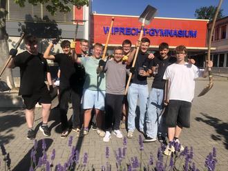 Ende Juni wurden am Wiprecht-Gymnasium die Spaten geschwungen. Schülerinnen und Schüler der 9. und 11. Klassen nahmen sich der Gestaltung eines Teils des Schulhofs an, um nicht nur für sich und die Schulgemeinschaft, sondern auch für die Bürgerinnen und Bürger der Stadt Groitzsch eine schönere Umgebung zu schaffen. Dafür mussten zunächst die Drainagesteine entfernt, die zwar zweckdienlich aber weniger ansehnlich und klimafreundlich waren. Dank einer großzügigen Spende vom Bauhof Groitzsch und zweier Kolleginnen des Wiprecht-Gymnasiums konnten zwei Beete mit guter Erde und duftendem Lavendel bepflanzt werden. Dies soll nur ein kleines Teilprojekt werden, was sich, so die Bewerbung erfolgreich ist, in den großen Rahmen als zukünftige Klimaschule perfekt einfügt.