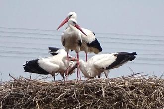 Volles Nest in Groitzsch. Die zwei Jungstörche waren im August fast nicht mehr von den Altstörchen zu unterscheiden. Foto: Olaf Becher