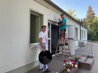 Im August wurde die Fassade unserer Kindereinrichtung Zwergenland teilweise ausgebessert und gestrichen. Jetzt erstrahlt unser Haus wieder in neuem Glanz. Zum Abschluss kam dann noch Herr Zetzsche vorbei und montierte unsere Hoflampe wieder an.