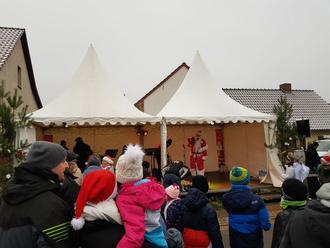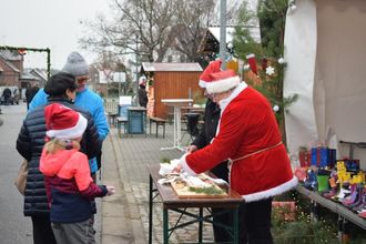 Der Weihnachtsmann kam diesmal mit einem kleinen Traktor angereist, was bei den Kindern sehr gut ankam. Mit kleinen Leckereien wurden dann alle belohnt, die in den Sack des Weihnachtsmannes greifen durften.