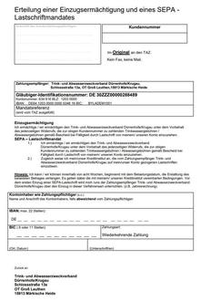 Hinweis: Bitte achten Sie darauf, dass das unterzeichnete Dokument nur im Original eingereicht werden kann. Als Kopie, Fax oder E-Mail kann die Einzugsermächtigung nicht berücksichtigt werden.
