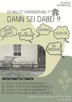 Ich bin ein jugendlicher Mensch zwischen 14 und 27 Jahren und wohne in einem der 17 Ortsteile der Gemeinde Märkische Heide.