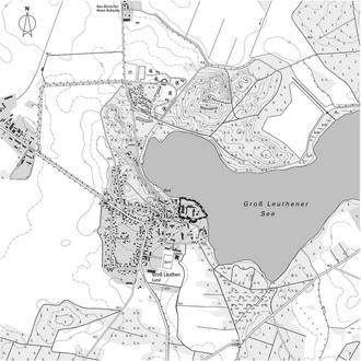 Der räumliche Geltungsbereich umfasst die Flurstücke 39/1, 40, 41, 43/1, 750 und 751 der Flur 1 in der Gemarkung Groß Leuthen. Der Geltungsbereich des Bebauungsplanes ist in untenstehender Grafik schwarz umrandet dargestellt (Darstellung unmaßstäblich).