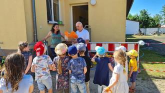 Bürgermeister Dieter Freihoff überraschte am Kindertag die Kitakinder in Biebersdorf und in Kuschkow.