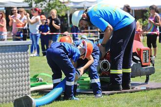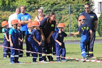 Nach den Begrüßungsworten von Bürgermeister Dieter Freihoff, Ortswehrführer Ronny Lehmann und mir als Gemeindejugendwartin, starteten die Mannschaften voller Eifer in die Gruppenstafette und den Löschangriff. Die Kinder und Jugendlichen im Alter von 5 - 18 Jahren zeigten dabei ihr ganzes Können und lieferten sich spannende Wettkämpfe.