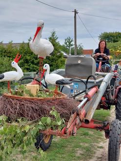 Beim Festumzug besonders zu bestaunen waren die hervorragend geschmückten Grundstückseinfahrten mit Puppen, Heuballen, etc. sowie die Umgestaltung unseres Buswartehäuschens zu einem kleinen Museum. Mit viel Liebe, Engagement und Recherchen ist es zu einem richtigen Hingucker (nicht nur für unsere Einwohner) geworden. Vieles wurde in mühevoller Kleinstarbeit über unseren Ort herausgesucht und ausgestellt.