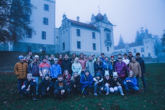 Die Schülerinnen und Schüler der Bläserklassen vor dem Schloß Boitzenburg.