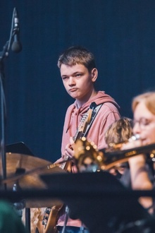 Bei beiden Abschlusskonzerten war das Landesjugendjazzorchester junior als Gastband auf der Bühne. In diesem Auswahlorchester freuen wir uns über die drei Schüler unserer Musikschule: Juno Bennewitz & Konstantin Schwarze am Bass und Marc Rentsch am Baritonsaxofon.