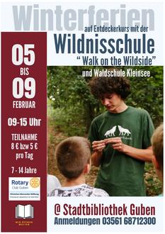 Die Wildnisschule „Walk on the Wildside“ und die Waldschule Kleinsee treffen sich in den Winterferien vom 05. - 09. Februar 2024 in der Gubener Stadtbibliothek. Täglich von 09:00 Uhr bis 15:00 Uhr gibt es für alle interessierten Kinder zwischen 7 und 14 Jahren ein ganz