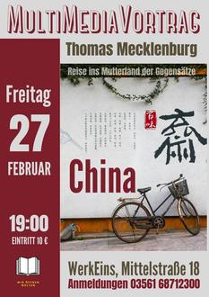 Zu einer eindrucksvollen Reise durch eines der vielschichtigsten Länder der Welt lädt Thomas Mecklenburg am Freitag, 27. Februar 2026, um 19:00 Uhr in das Werk 1 in der Mittelstraße 18 ein. Unter dem Titel „China – eine Reise ins Mutterland der Gegensätze“ präsentiert der erfahrene Weltenbummler eine faszinierende Bilderreise voller Kontraste, Begegnungen und überraschender Einblicke.