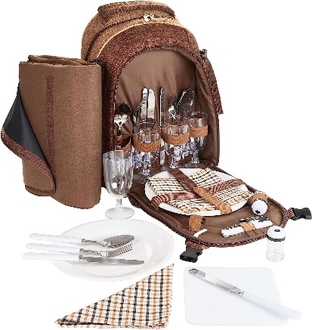 Der praktische Picknickrucksack ist ein perfekter Outdoorbegleiter zur Aufbewahrung Ihrer Getränke und Speisen. Die Tasche mit ihrem umfangreichen Besteck- und Gläser-Set für vier Personen ist eine ideale All-in-One-Lösung. Der Rucksack, der bequem auf dem Rücken getragen werden kann, ist vielseitig einsetzbar und leicht zu transportieren - ob als Weinkühler, Picknicktasche oder einfach als Thermotasche. Das insgesamt ca. 11 Liter fassende große Kühlfach hält jeden Reise-Proviant schön kühl und frisch. Ebenfalls im Lieferumfang enthalten ist eine Picknickdecke aus Fleece mit wasserfester Unterseite, dessen Liegefläche ca. 120 x 135 cm beträgt und die am Rucksack fixiert werden kann.