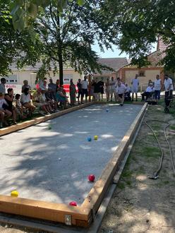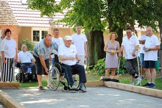 Timo Seltmann, von der Sparkasse-Spree-Neiße, Kerstin Klemt, Leiterin der Pro Seniore Residenz Deulowitz eröffneten gemeinsam mit dem Dorfclubvorsitzenden Andre Lehmann feierlich die Bahn. Im Anschluss gab es den ersten Boccia-Wettkampf zwischen Pro Seniore und den Dorfbewohnern.