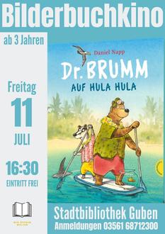 Die Stadtbibliothek Guben lädt am Freitag, dem 11. Juli 2025, um 16:30 Uhr alle kleinen Bücherfreunde ab 3 Jahren herzlich zum nächsten Bilderbuchkino ein. Gezeigt wird die humorvolle Geschichte „Dr. Brumm auf Hula Hula“ – ein turbulentes Abenteuer von Dr. Brumm, Dachs und Pottwal, die sich eigentlich nur erholen wollten.