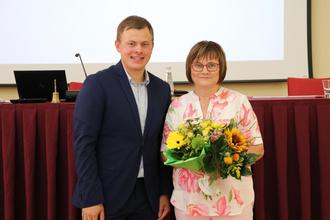 Fraktionsvorsitzender Thomas Laugks gratuliert der 1. stellv. Vors. Monika Birkholz.
