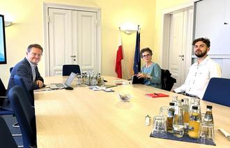 Am 1. August 2023 besuchte uns die Landtagsabgeordnete der Fraktion DIE LINKE, Frau Anke Schwarzenberg. Inhaltlich ging es um eine Auswertung der auslaufenden INTERREG VA Förderperiode, die aktuellen Arbeitsfelder der Euroregion sowie den Strukturwandel in der Lausitz. Zudem gab es einen spannenden Gedankenaustausch zu den grenzüberschreitenden Kooperationschancen im Gesundheitswesen und in der Energiewirtschaft. Selbstverständlich nutzten wir die Möglichkeit um Frau Schwarzenberg eine herzliche Einladung zum 30. Jubiläum unserer Euroregion auszusprechen, welches am 23. September 2023 in der Doppelstadt Guben-Gubin als Bürgerfest gefeiert wird.