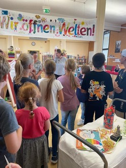 Am 1. September 2023, den ersten Freitag nach den Sommerferien, fand die große Abschlussfeier des Brandenburger Lesesommers in der Stadtbibliothek Guben statt. In diesem Jahr verwandelte sich der Kinderbereich in einen großen Spielplatz. Es konnte auf der Slackline balanciert, in verschiedenen Spielen gegeneinander angetreten und mit dem Dash-Roboter experimentiert werden. Nach Spiel, Spaß und Naschereien haben alle fleißigen Leser eine Urkunde und einen coolen Beutel erhalten. Insgesamt wurden in den Sommerferien unglaubliche 245 Bücher gelesen! Mit 41 gelesenen Bücher konnte die Klasse 4a der Friedensschule den Wanderpokal für die beste Leseklasse für sich gewinnen. Die besten Leser in ihrer Klassenstufe waren