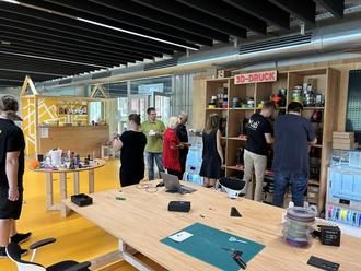 Am 5. September 2023 trafen sich insgesamt neun Interessierte aus Guben und Spremberg/Grodk zum dritten Mal im Rahmen des Verbundprojektes „Kommunen innovativ – Altersinnovationen“ im Creative Open Lab (COLab). Der thematische Workshop beschäftigte sich mit der Technik des 3D-Drucks. Viele der Teilnehmenden kamen erstmals mit dieser Technik in Berührung und konnten sich an selbstgefertigten Namensschildchen und Buchhaltern ausprobieren. Mit einem Rundgang durch die hochtechnologisch ausgestattete Mitmachwerkstatt der BTU Cottbus-Senftenberg endete ein interessanter und ereignisreicher Ausflug.