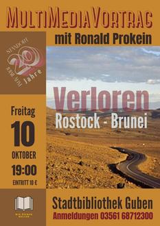 Am Freitag, 10. Oktober 2025, um 19:00 Uhr lädt die Stadtbibliothek Guben zu einer besonderen Lesung mit dem Abenteurer und Guinness-Buch-Rekordler Ronald Prokein ein. Vorgestellt wird sein Buch „Verloren: Rostock – Brunei“, das eine außergewöhnliche aber auch tragische Reise dokumentiert.