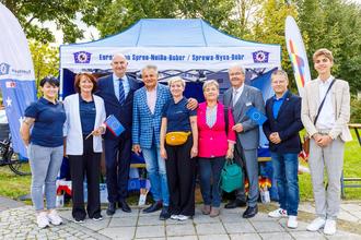 Nach einem Rundgang über das Festgelände zeichnete er sowohl die Sieger des o.g. Beachvolleyball-Turniers - als auch die ältesten und jüngsten Teilnehmer des Herbstlaufs aus. Zudem bedankte er sich für die geleistete Arbeit seit 1993 und sagte: „30 Jahre Euroregion Spree-Neiße-Bober bedeuten 30 Jahre Zusammenwachsen, Vielfalt und Partnerschaft auf Augenhöhe. Sie bedeuten Kreativität und Tatkraft. Mein herzlicher Dank geht an alle, die sich in der Euroregion Spree-Neiße-Bober für ein gelungenes Miteinander starkmachen.“