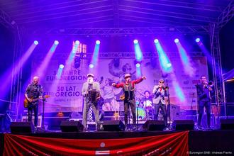 Darüber hinaus wurde ein großer Geburtstagskuchen angeschnitten und verteilt. Es folgten tolle Auftritte von Vertretern der Gubiner Musikschule, der Gubener Städtischen Musikschule „Johann Crüger“ (darunter u. a. Black Mambas – Klarinetten-Ensemble, das Blockflöten-Ensemble und das ZupfSTreichOrchester Guben, The Peppermints), der Gesanggruppe des Kulturhauses aus Zary und dem Spremberger Stadtchor des Albert-Schweitzer-Familienwerks. Krönender Abschluss auf der Hauptbühne war der knapp zweistündige Auftritt der Berliner Band Polkaholix.