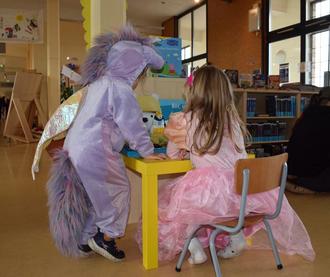 Plötzlich flanierten da die Prinzessinnen neben dem gestiefelten Kater und Harry Potter, Räuber belagerten die Sitzplätze, Geisterwesen huschten zwischen den Regalen umher und das Einhorn hielt die Hand der Meerjungfrau. Was für eine Aufregung, was für ein Durcheinander und was für ein Gewusel. Bis in die letzte Ecke gab es Dinge zu tun und zu entdecken. Schon beim Eintritt musste jeder Ankömmling am Glücksrad drehen und konnte eine Kleinigkeit gewinnen. Der Gewinner des Hauptpreises hatte allerdings schwer an seinem Gewinn zu tragen. Neben einer Jahresgebühr für die Bibliothek gab es nämlich einen riesigen Kürbis dazu. So einen Kürbisriesen hat die Gubener Märchenwelt noch nie zuvor gesehen.