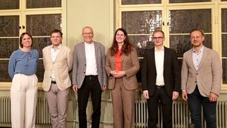 Die Teilnehmenden der Gubener Gespräche: (v.l.) Dr. Maria Wilke, Dr. Cedrick Ansorge, Pfarrer i. R. Stefan Süß, Prof. Claudia Lehmann, Dr. Karl Andreas Eckert und Dr. Christian Hain.