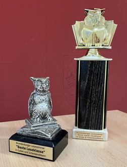 Die begehrten Eulenpokale für die besten Leseklassen. © Stadt Guben