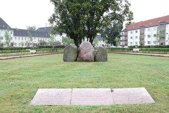 Blick auf die zentralen Gedenksteine. © Stadt Guben