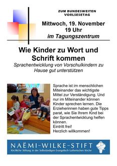 Also herzlich willkommen allen Interessierten am Mittwoch, 19. November, um 19 Uhr im Tagungszentrum des Naëmi-Wilke-Stifts.