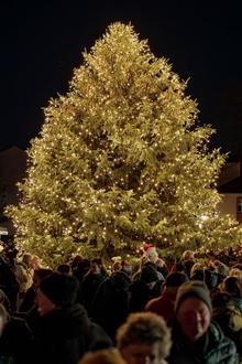 Der Weihnachtsbaum erstrahlt im Lichterglanz.