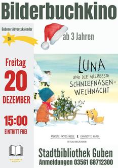 Am Freitag, 20. Dezember 2024, um 15:00 Uhr lädt die Stadtbibliothek Guben zu einem bezaubernden Bilderbuchkino für Kinder ab 3 Jahren ein. Gezeigt wird die herzerwärmende Geschichte „Luna und die allerbeste Schniefnasen-Weihnacht“.