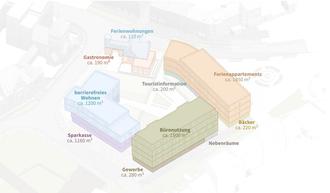 Auf der schematischen Zeichnung lässt sich der vielfältige Nutzungsmix der geplanten Bebauung erkennen.