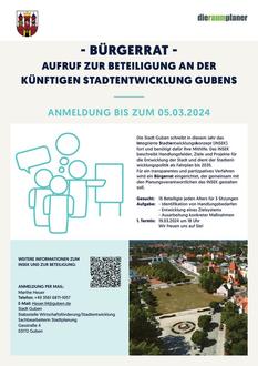 Für weitere Informationen zum INSEK und zur Anmeldung im Bürgerrat wenden Sie sich bitte an Marthe Heuer, Sachbearbeiterin Stadtplanung, per E-Mail an Heuer.M@guben.de unter Angabe Ihres Namens, Alters und Wohnorts oder unter der Telefonnummer 03561 6871-1057. Besuchen Sie auch unsere Website, um aktuelle Neuigkeiten zum INSEK-Prozess einzusehen.