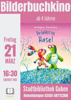 Am Freitag, 21. März 2025, um 16:30 Uhr lädt die Stadtbibliothek Guben erneut zum beliebten Bilderbuchkino ein. Dieses Mal steht die einfühlsame Geschichte „Du fehlst so, Hase!“ im Mittelpunkt – eine berührende Erzählung über Freundschaft, Verlust und die Kraft der Erinnerungen.