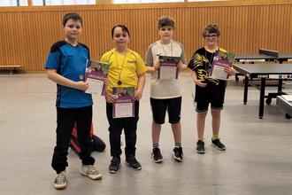 Bei den ältesten waren nur Jungs am Start, auch hier gab es zwei Vorrundengruppen. Kurios: Nach dem Viertelfinale war die Vorrundengruppe 2 unter sich, alle vier besiegten ihre Kontrahenten aus Gruppe 1. Die besten Nerven hatte Magnus Poesch, das Finale gegen Fynn Schultke gewann er 2 : 0. Dritte wurden Islam Movsarov und Louis Malcharek.