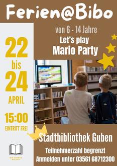 Die Stadtbibliothek Guben lädt alle jungen Gaming-Fans zu einem besonderen Event ein: Vom 22. April bis 24. April 2025 wird die beliebte Nintendo-Spielereihe Mario Party lebendig.