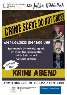 Unter dem Titel „Krimi³“ erzählen ein LKA-Profiler, ein forensischer Psychiater und ein Kriminalreporter. Das Trio beschäftigt sich mit Mord. Carsten Schütte, Thorsten Sueße und Ulrich Behmann sind ein eingespieltes Team, wenn es um gehobene Krimi-Unterhaltung und um Spannung geht. Behmann beschäftigt sich diesmal mit dem Thema „Der perfekte Mord“ und schaut in die Abgründe der menschlichen Seele. Seinen Lesern verrät er Details, die nachdenklich machen und Gänsehaut verursachen. Freuen Sie sich auf einen fesselnden und mitreißenden Abend mit spannenden Einblicken in die Arbeit der drei Autoren, die sehr gern auch all Ihre Fragen zu den Themen beantworten werden. Mit Unterstützung durch das „Neustart Literatur“ - Programm des Deutschen Literaturfonds im Rahmen von „Neustart Kultur“.