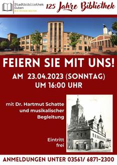 Aus diesem Anlass hat die Stadtbibliothek Guben einige besondere Highlights aus Fördermitteln des Deutschen Literaturfonds im Rahmen „Neustart Kultur“ zusammengestellt. Alle Veranstaltungen zum 125-jährigen Jubiläum der Stadtbibliothek sind kostenlos!