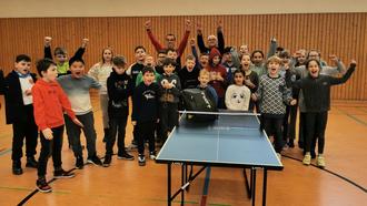 Beim Ortsentscheid der Mini-Meisterschaften im Tischtennis Ende Januar war die Friedensschule nach 2023 erneut die am zahlreichsten vertretene Grundschule aus Guben und Schenkendöbern. Sage und schreibe, 30 der 40 gestarteten Mädchen und Jungen gehen in die Einrichtung an der Gubener Schulstraße. Schulleiter Frank Müller hatte ordentlich die Trommel gerührt, nun durften er und seine „mini-Meister“ ihren Preis aus den Händen von Abteilungsleiter Roberto Strauch und Übungsleiter Norbert Fechner in Empfang nehmen – eine Tischtennisplatte inklusive Netz für die Freizeitgestaltung im Schulalltag.